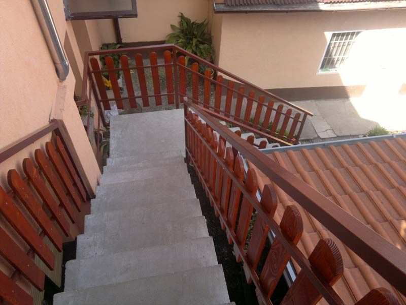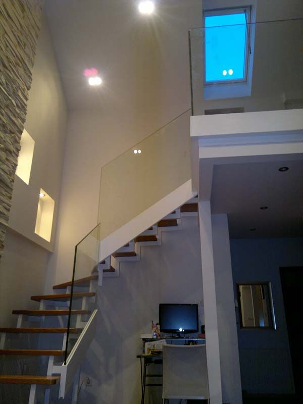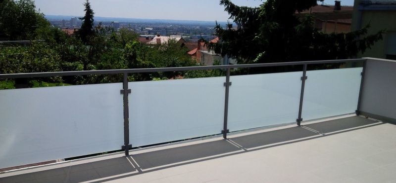 - željezna konstrukcija za staklenu ogradu, sa mlječnim sigurnosnim staklom (može biti i u bojama), sa posebno izrađenim “Fe” čeličnim nosačima za prihvat stakla