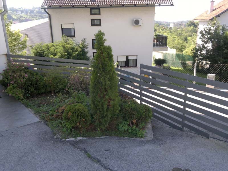Ograda sa ispunom od egzotičnog drveta, drvo koje je ima veču gustoču utpornije je na vremenske utjecaje i truljenje a tako i na održavanje.